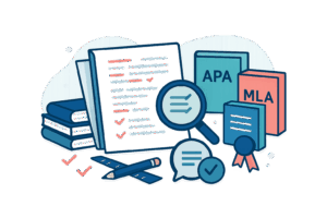 Language editing, academic formatting (APA/MLA/Chicago/IEEE), reference checks, plagiarism screening, figure/table polishing, and final proofing.